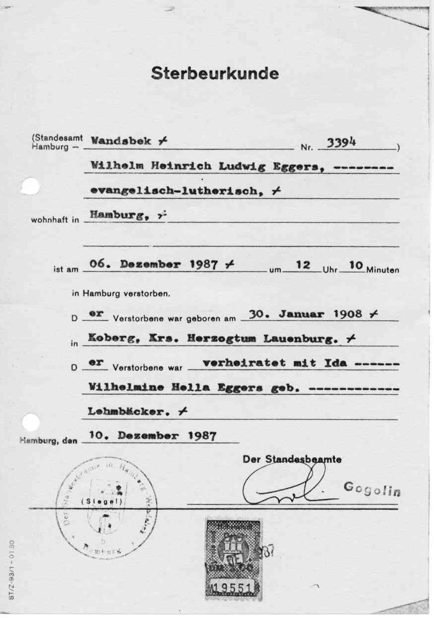 3394/1987 Standesamt Hamburg-Wandsbek(Dokument)