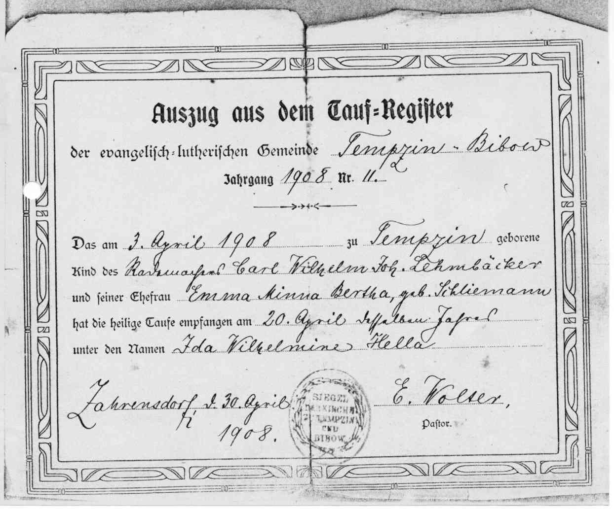 2/1908 Auszug aus dem Taufregister(Dokument)