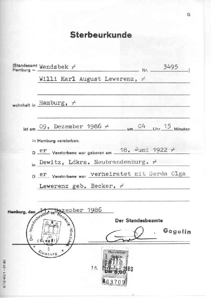 3495/1986 Standesamt Hamburg-Wandsbek (Dokument)