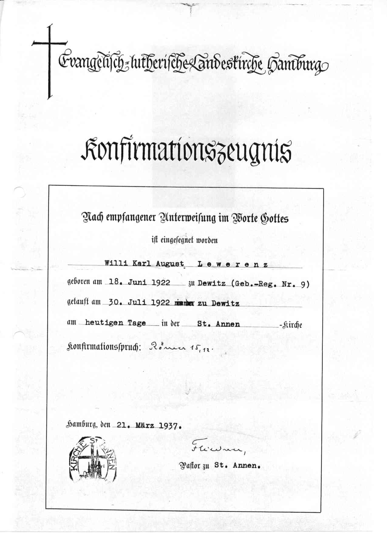 Konfirmationszeugnis St.Annen-Kirche, Hamburg (Dokument)