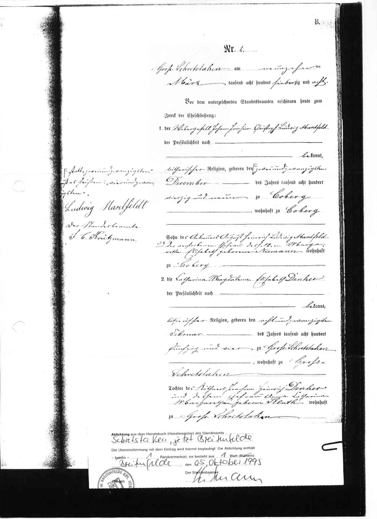 2/1878 Standesamt Schretstaken (jetzt Breitenfelde)(Dokument)
