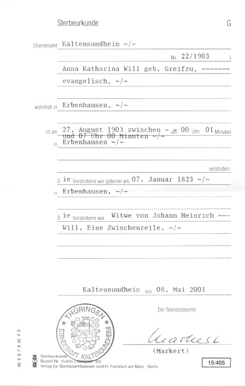 22/1903 Standesamt Kaltensundheim (Dokument)