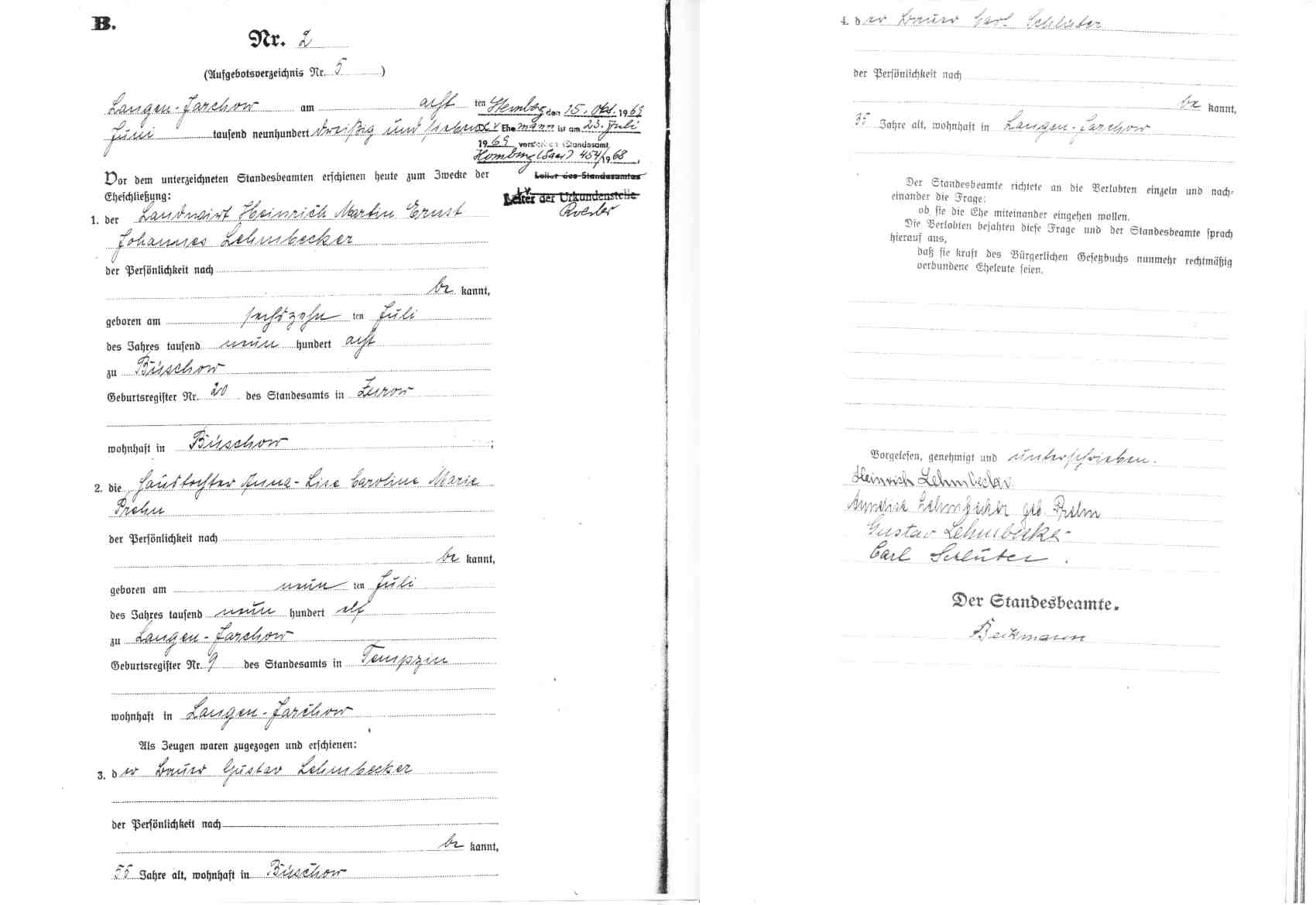 Standesamt Langenjarchow Nr. 2/1937 (Dokument)