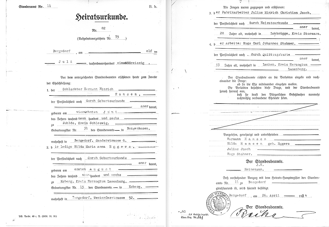 82/1930 Standesamt 11, Hamburg-Bergedorf (Dokument 1) (Dokument 2)